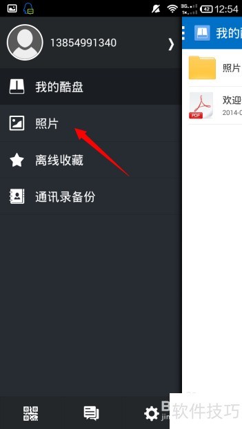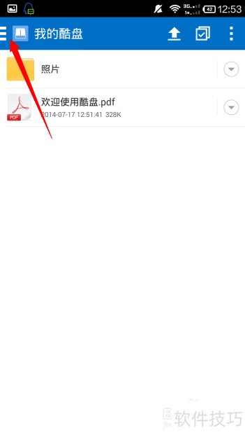2、 登录酷盘后,点击左上角三条线并右滑即可。