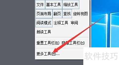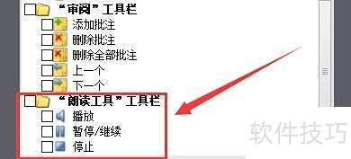 4、 在更多工具里启用朗读工具栏,勾选播放、暂停/继续和停止功能。