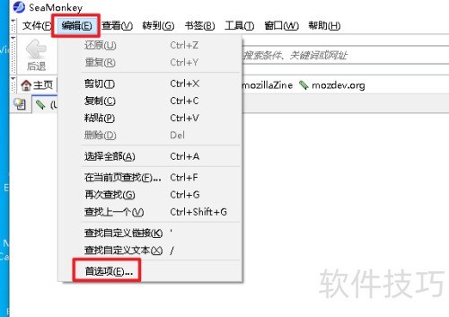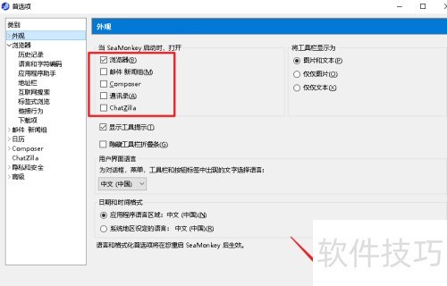 启动SeaMonkey时,通过设置首页或启动页面来选择默认打开的网页。
