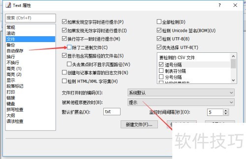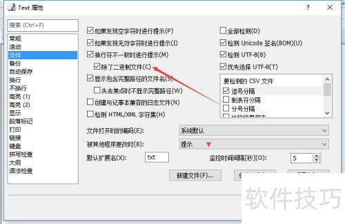 4、 进入配置属性页面,选择文件选项