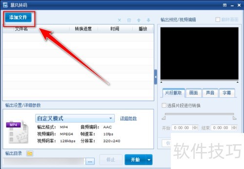 1、 在暴风转码界面左上角点击添加文件按钮。