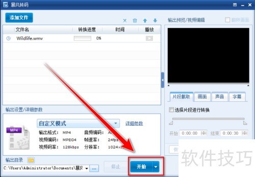 9、 在暴风转码主界面点击开始,即可将WMV视频轻松转换为MP4格式。
