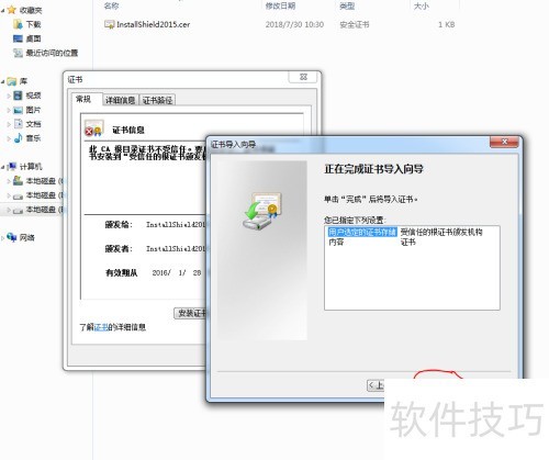 10、 解压后,双击运行文件夹内的InstallShield2015.cer证书文件即可。