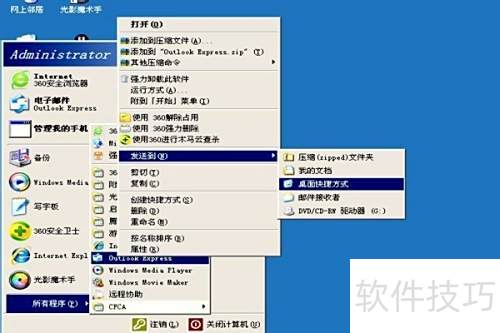 9、 将Outlook Express快捷方式创建到桌面即可完成发送。