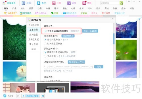 5、 在基本设置窗口中,勾选开机自动启动搜狗壁纸选项,具体位置见图示。