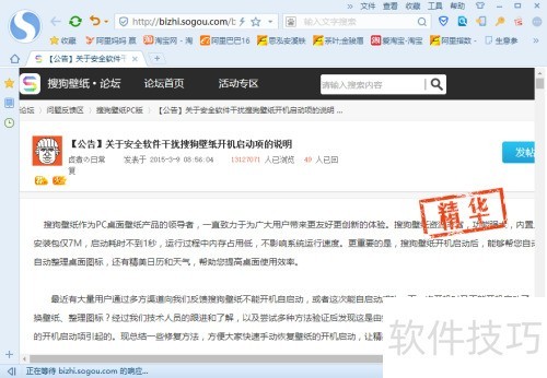 1、 启动计算机并打开搜狗壁纸软件,操作界面所示。
