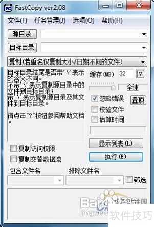 2、 第二步:在软件的压缩文件夹中找到名为FastCopy.exe的程序,双击运行即可启动。软件界面简洁朴素,操作直观,具体界面效果2所示。