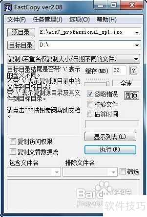 3、 第三步:FastCopy的操作十分简便,用户只需点击源目录和目标目录按钮,分别设置要复制的文件所在位置及复制的目标路径。软件支持通过拖拽方式快速添加源和目标路径,还可同时拖入多个文件或文件夹,操作灵活高效。例如,可将E盘中的Windows 7 ISO镜像文件轻松复制到D盘。整个过程直观明了,无需复杂设置,极大提升了文件传输效率,适合各类用户快速完成批量或大文件的复制任务。