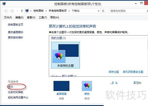 2、 打开个性化设置,点击左侧的显示选项。