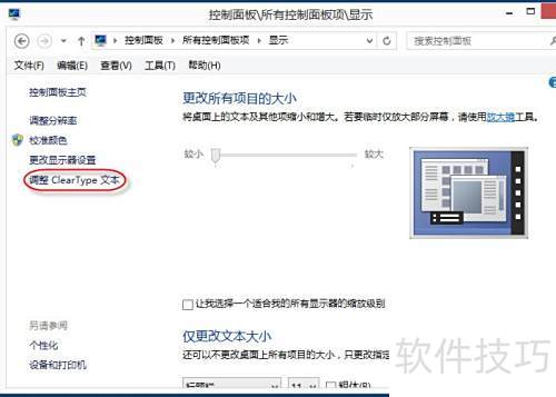 3、 打开显示设置,选择左侧的调整ClearType文本选项。