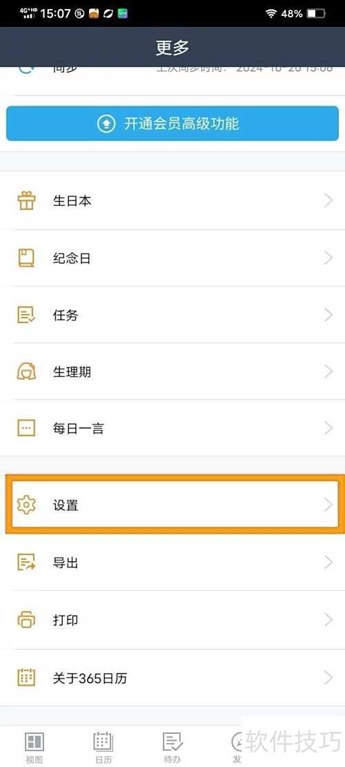 2、 进入设置页面,开启黄历功能。