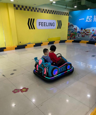 先看场地与车辆玩碰碰车,首先要熟悉场地,场地通常不大,四周有围栏,地面很光滑,车辆是电动的,靠一根杆子,连接顶棚电网,方向盘控制方向,脚下有油门,记住,车子只能前进,不能后退,所以,转向要提前。