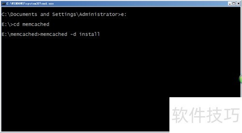 5、 通过命令提示符进入解压目录,执行memcached -d install命令即可完成安装。