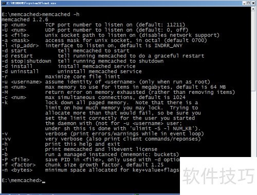 6、 输入memcached –h,若显示相应界面,则表示安装成功。