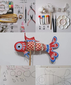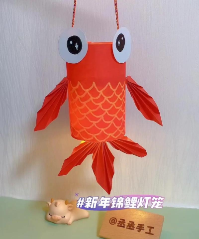 然后是糊纸装饰骨架做好后,就可以糊纸了,把彩纸剪成合适的大小,轻轻糊在骨架上,用胶水粘牢,注意要平整,不要有褶皱,接着就是装饰,用画笔画出鱼鳞,鱼眼睛要画得精神点,还可以贴上亮片,或者用金线勾勒,让灯笼更闪亮,这一步最能体现创意。