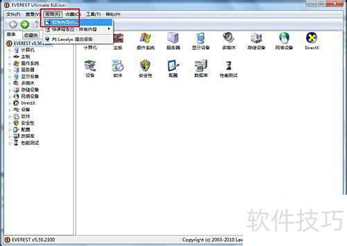 4、 启动Everest程序,选择报告菜单下的报告向导功能。