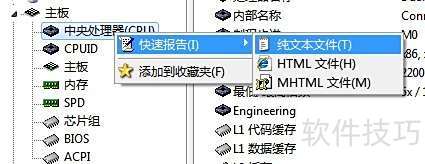 1、 以中央处理器(CPU)为例,右键点击该设备,选择快速报告菜单,随后在子菜单中点击纯文本文件选项即可生成报告。