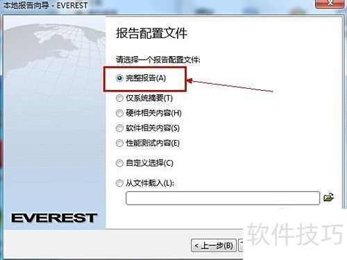 6、 在报告配置界面选取完整报告,点击下一步即可生成全部内容。