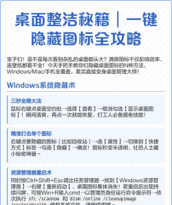 最后看第四步,借助第三方工具如果你觉得,系统自带功能不够用,还可以试试,一些桌面整理软件,这些工具,通常有更多功能,比如,自动归类图标,或者,创建虚拟桌面,它们能让隐藏和显示,变得更灵活,不过,下载软件时,要选正规渠道,避免安装到,带广告的版本,用起来才放心。