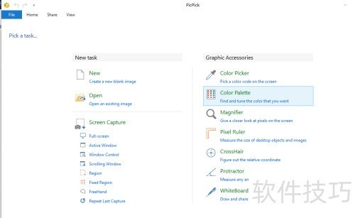 3、 安装完成后,双击运行PicPick,即可看到其操作界面,所示。