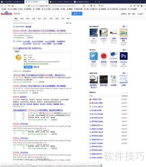 打开浏览器,在地址栏输入PicPick,搜索并进入其官方网站,具体操作所示。