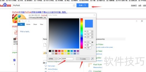 4、 此工具为吸管,点击后可吸取网页、图片等中的颜色。