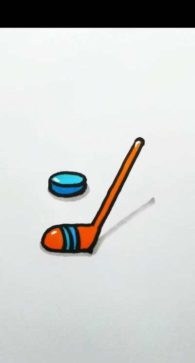 冰球是扁圆柱体,所以,先画一个椭圆,注意,它不能太圆,边缘要带点弧度,然后,在椭圆下方,再画一条平行线,连接两侧,这样,立体感就出来了。