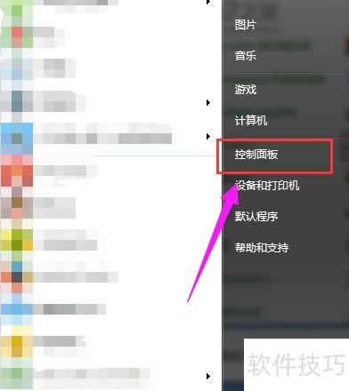1、 点击开始菜单,进入控制面板选项。