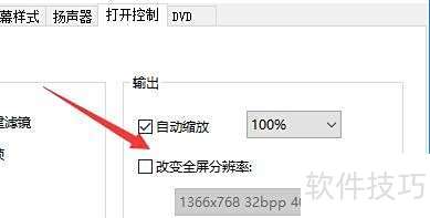 5、 在显示输出窗口中,点击打开控制,勾选更改全屏分辨率选项即可。