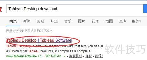 1、 在搜索引擎中输入tableau desktop download,搜索结果第一条即为Tableau官方网站,可直接进入下载页面获取所需软件。