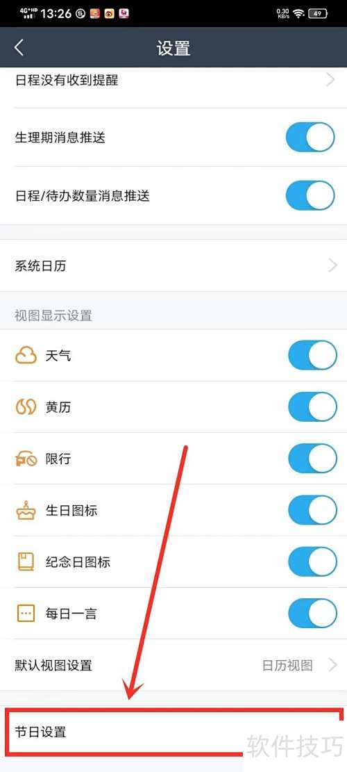 2、 进入设置页面后,选择并点击节日设置选项。