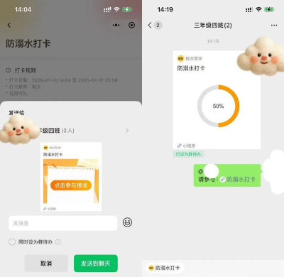 第二种方法,是用小程序,现在有很多,打卡小程序,可以嵌入群里,大家点进去,就能打卡,数据会自动,统计起来,非常方便,也节省时间。