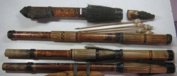 做吹箭,先找材料,主要两样,吹管和箭,吹管用竹子,或者PVC管,竹子要直,内壁光滑,PVC管也行,五金店有卖,长度一米左右,箭用牙签,或者细竹签,前面绑针头,或者削尖也行。
