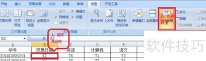 完成后,首行与首列始终可见,便于随时查看任意学生各科成绩,所示。