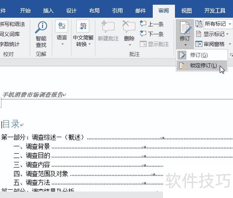 文档中默认允许所有用户关闭修订功能,只需点击按钮下方的下拉箭头,从列表中选择即可。为避免他人随意关闭影响审阅流程,用户可启用锁定修订功能,确保修订状态不被擅自更改,保障审阅工作的连续性与安全性。具体设置方法如下。