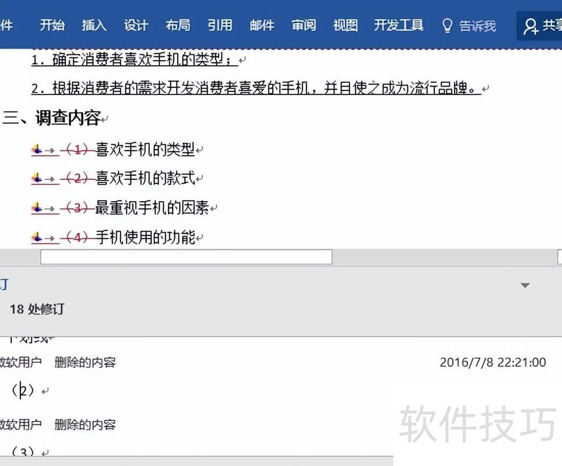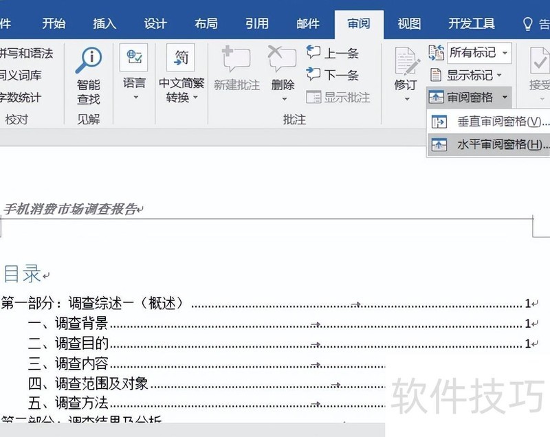 切换至选项卡,点击组中按钮旁的下拉箭头,弹出的菜单包含和两种模式,用户可根据需要选择。此处选择以方便查看修订内容。