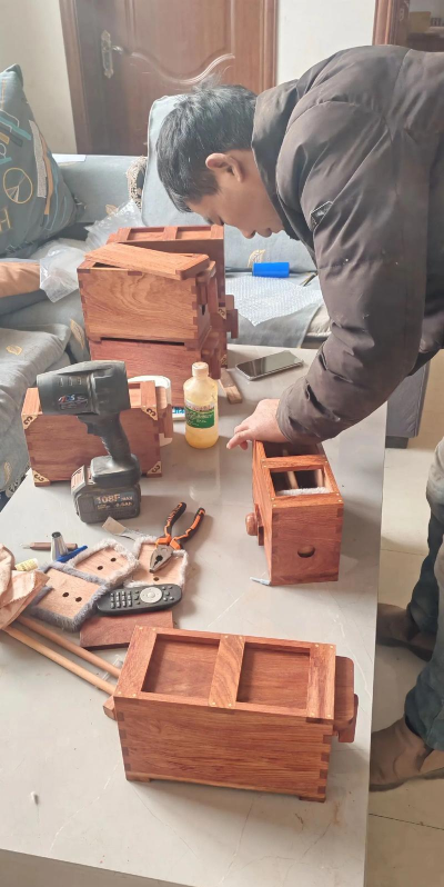 接着是组装拼接环节把裁好的木板摆好,先拼箱子的底板和侧面,用螺丝或钉子固定角部,可以先在接合处涂点木工胶,这样更结实,然后装上另一侧的板,最后是箱子的正面和背面,组装时随时检查是否方正,可以用直角尺辅助,确保箱子不歪斜。