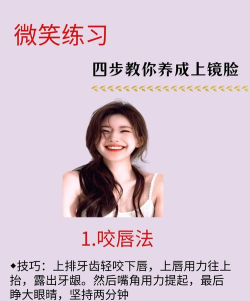 最后是练习方法对着镜子多练练,找到最适合自己的角度,也可以拍视频看看,调整细节,平时多观察别人怎么笑,学习自然的表情,但别完全模仿,要有自己的风格。