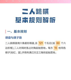 然后是对局策略开局别急着乱跳,先把自己的棋子,往前推进一些,尽量搭出跳板,为后面连续跳做准备,中盘要观察对手,堵住他的路线,同时找机会,让自己的棋子连跳,接近终点时,要算好步数,别把自己堵死。