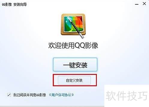 2、 下载QQ影像安装包,解压后打开安装程序,选择自定义安装并继续操作。