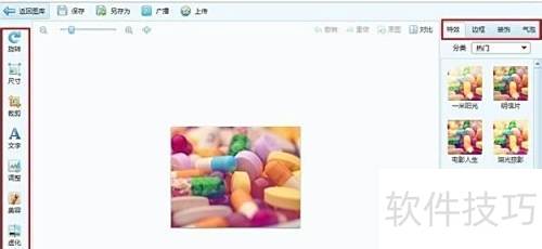 4、 启动QQ影像后,利用左侧工具栏和右上角效果设置,可对图片进行多种编辑操作。