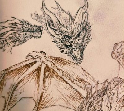 用轻线条画出草图,别怕画错,多调整几次,龙头是重点,画出尖锐的角和獠牙,身体线条要流畅,体现龙的力量感,翅膀的骨架要清晰,膜翼可以画得破碎些,像冰晶,尾巴可以分节,末端加点尖刺。