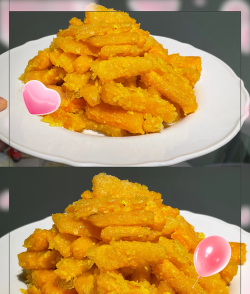 家常做法四:南瓜饼这个当点心很棒,南瓜蒸熟压成泥,趁热加糯米粉,和成光滑面团,分成小剂子,按扁成饼,锅里放少许油,小火慢煎到两面金黄,外脆里糯。