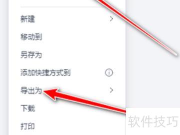 在弹出的菜单中,点击导出为选项。