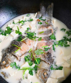 盐要最后放,放早了,鱼肉容易变柴,可以加点姜片和葱段,进一步去腥增香,喜欢的话,放点豆腐或白萝卜,味道更鲜美,出锅前,撒点胡椒粉和香菜,味道绝了。