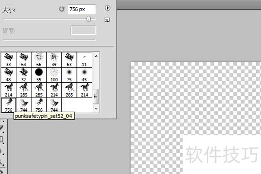 选择画笔工具,再从工具栏中导入并选用毛笔笔刷。