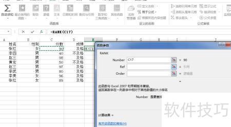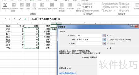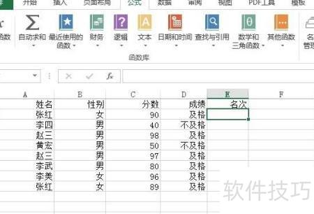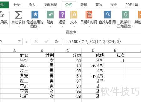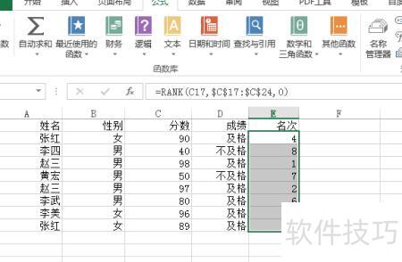 将鼠标移至E17单元格右下角,待光标变为十字后按住左键向下拖动,即可自动计算出其余单元格的排名。