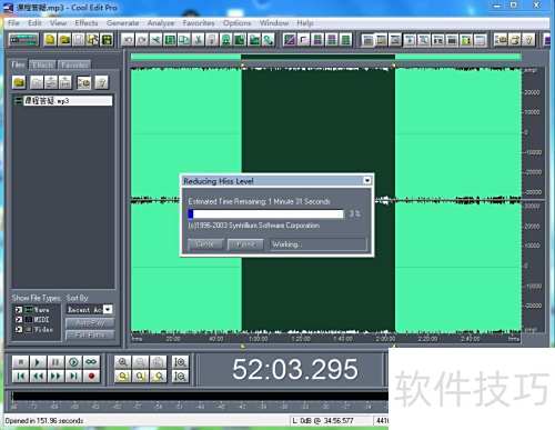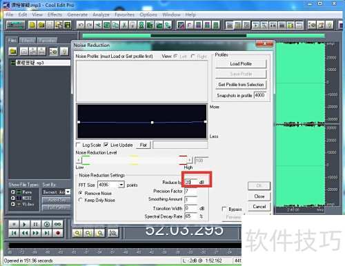 在Cool Edit Pro中,可通过效果菜单选择降噪功能,按提示步骤处理即可有效降低音频噪声。