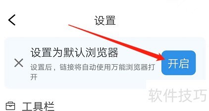 6、 进入设置页面,设为默认浏览器后,点击开启按钮即可使用。