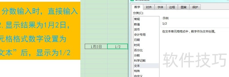 输入多位数或分数时,文本格式设置导致数据显示与预期不符。